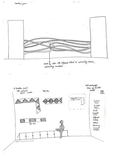 To design a space for visually impaired students (Primary school students) that can help them release their motor flow by triggering various stimuli through the sense of movement, vision (for partially blind), touch and sound. These stimuli are triggered by providing them sensory experiences including touch, sound, smell and motor sense.