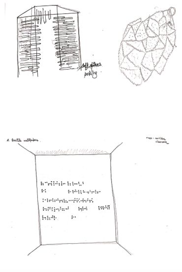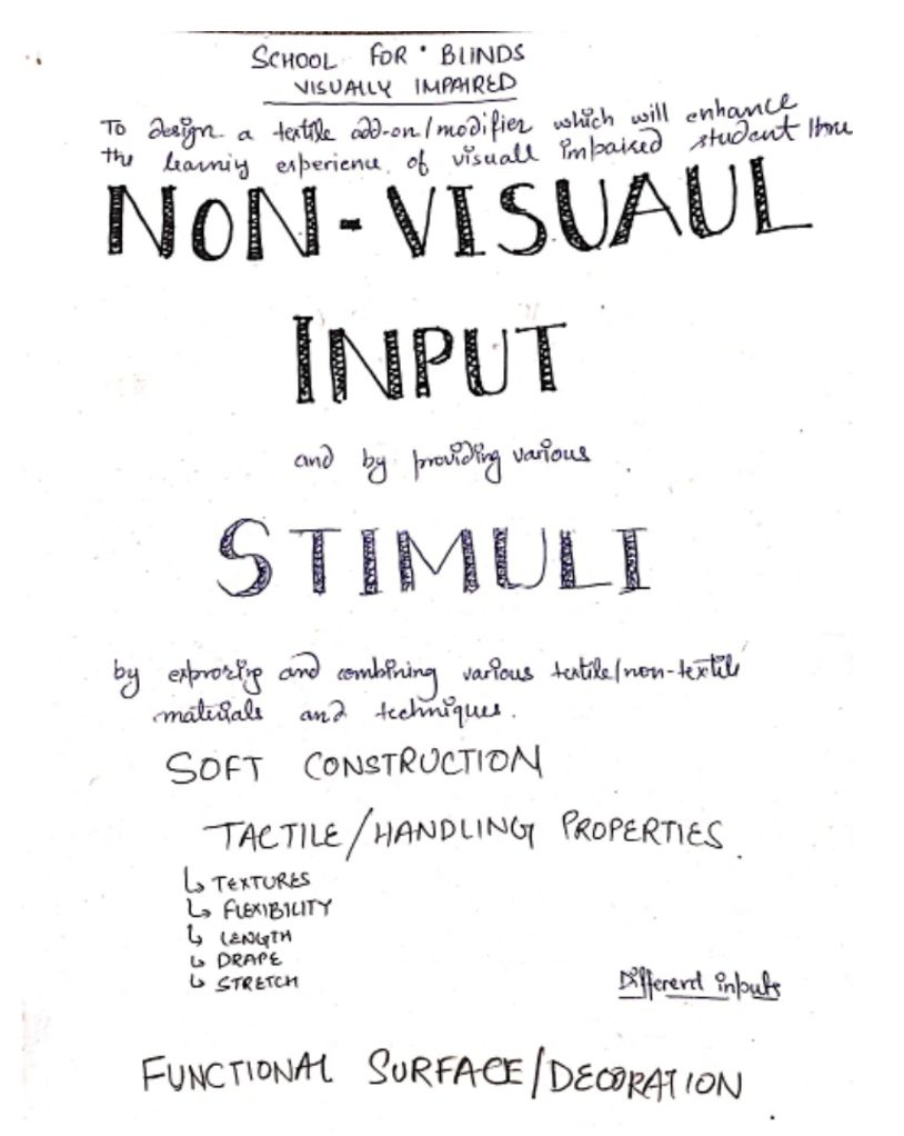 The study of colour and textures at the different areas in the school helped us to learn design consideration and user-specific standards being followed in the space. For example, the blind school has different textures on the floor and walls as indicators and safety measurements. Some textures on the wall are made due to constant touching by the visually impaired while navigating. Contrasting colours are used in certain areas for the ease of partially blind students. In pre-school. walls are painted with light blue colour which is in contrast with the colour of flesh. It helps deaf students in reading lip movement (as the person stands out against the blue background). Similarly, textures and colours are different in different areas to ease mobility. Floor textures are designed in such a way that it follows a direction and helps visually impaired in navigation through spaces.