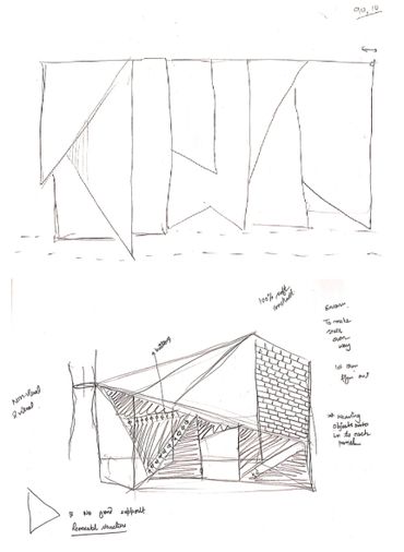 The mood board takes elements from the space and activities. The space can be seen as layers of shapes and forms and the activities are taking place in between these layers. Blind mannerism is the key focus in the area of activity so, it was included in the mood board.